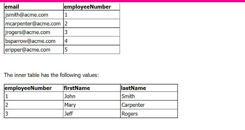the employeeNumber field. An outer join returns all rows from both tables, with matching